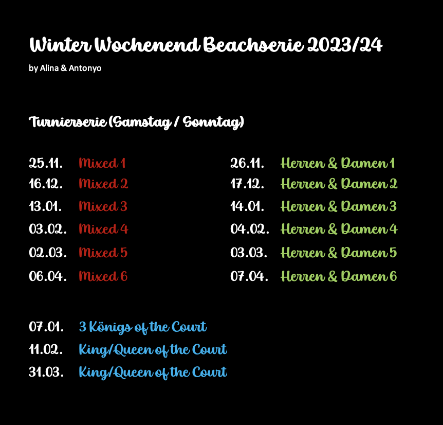 damit wir im Winter weder das Beachen verlernen noch den Nervenkitzel der Turnierluft missen müssen.